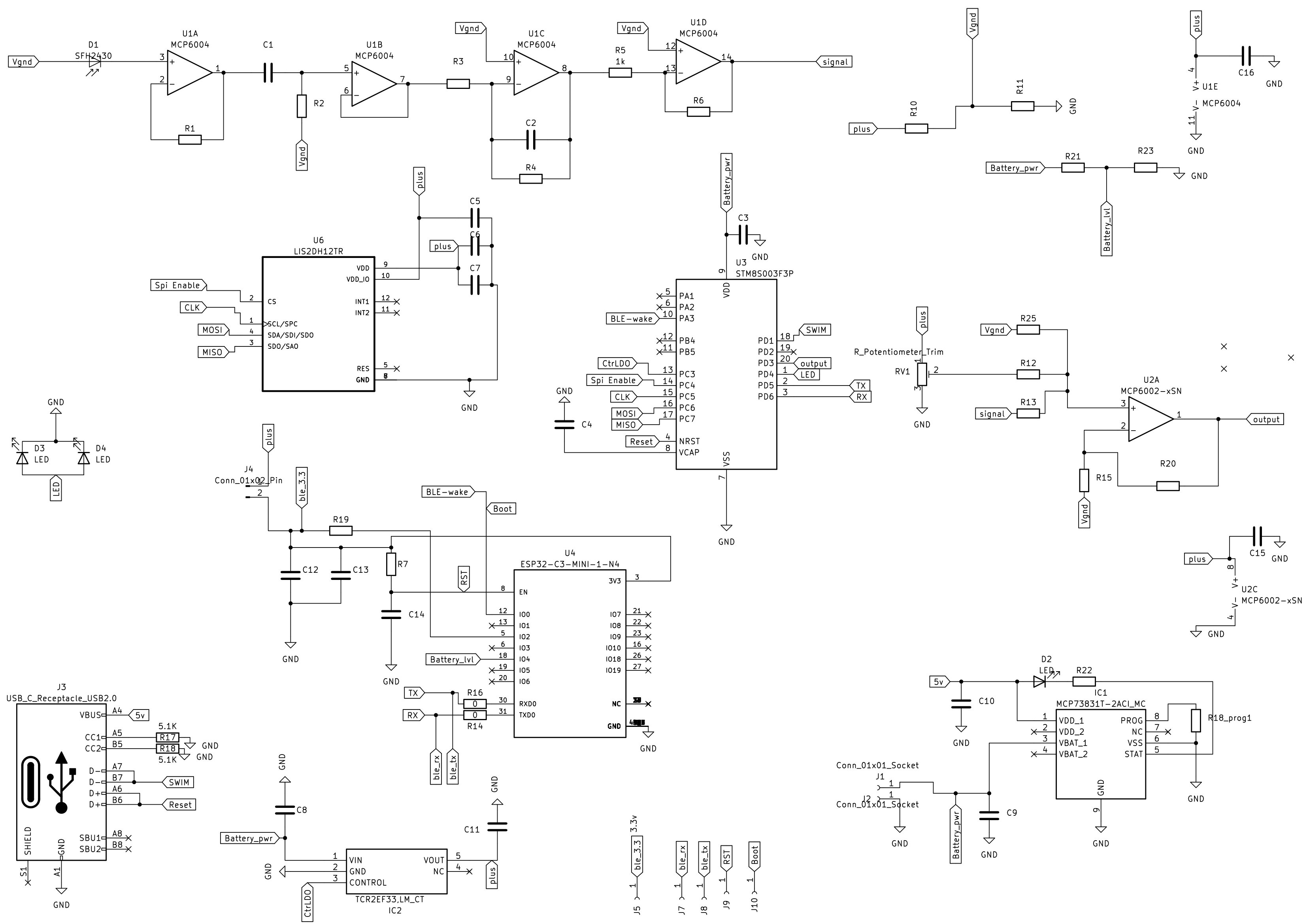 A core design criteria from the outset was to create a truly wearable and unobtrusive device. This necessitated attention to component selection for minimal footprint and a highly compact Printed Circuit Board (PCB) layout. We successfully engineered the entire system onto a mere 35mm x 19mm PCB, a significant achievement given the inclusion of two microcontrollers, a novel analog front-end for PPG sensing, power/and battery management systems and a USB-C receptacle. (1st Slide)